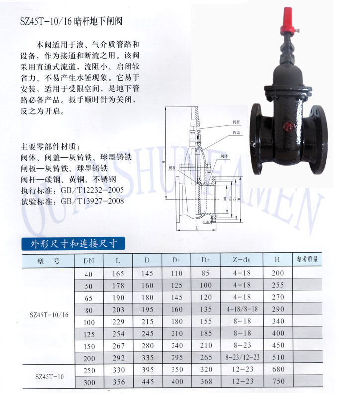 SZ45T-10(16) 暗桿地下閘閥
