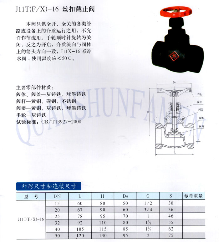 J11T(F/X)-16 絲扣截止閥